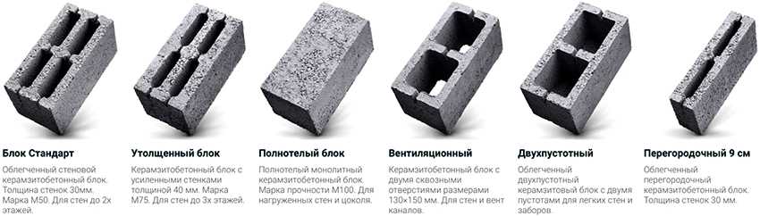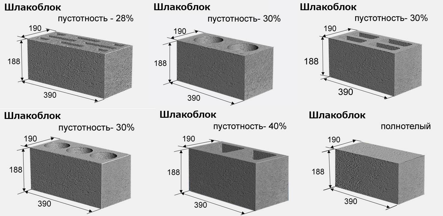 Строительные шлакоблоки производятся в нескольких разновидностях.