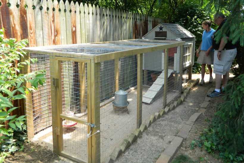 При этом в самом вольере необходимо создать теневую зону. Она необходима для того, чтобы птицы при желании могли прятаться там от палящего солнца. Крыша курятника должна обладать стоками для воды, чтобы она не застаивалась на крыше и не протекала в вольер.