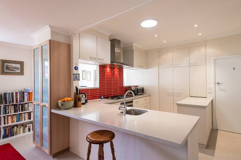Можно обустроить освещение под шкафами: это выглядит стильно