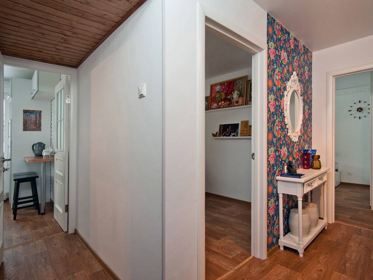 Традиционный способ отделки стен — выравнивание и оклеивание поверхности обоями. Однако этот вариант проблематичен для хрущёвки. Дома советской постройки не отличались идеально ровными стенами, и наклеить обои идеально «стык в стык» практически невозможно, особенно, если опыта подобных работ не имеется. Если вы всё же решили оклеивать бумажные, виниловые или флизелиновые полотна, то приготовьтесь к затратному по времени и средствам, выравниванию поверхностей. Обойтись без сложной подготовки стен можно, если использовать жидкие обои, которые помогут скрыть незначительные дефекты и разнообразить интерьер помещения. Также популярно шпаклевание с последующей покраской. Этот вариант хорош тем, что можно с лёгкостью изменить интерьер, просто перекрасив стены в другой цвет.
