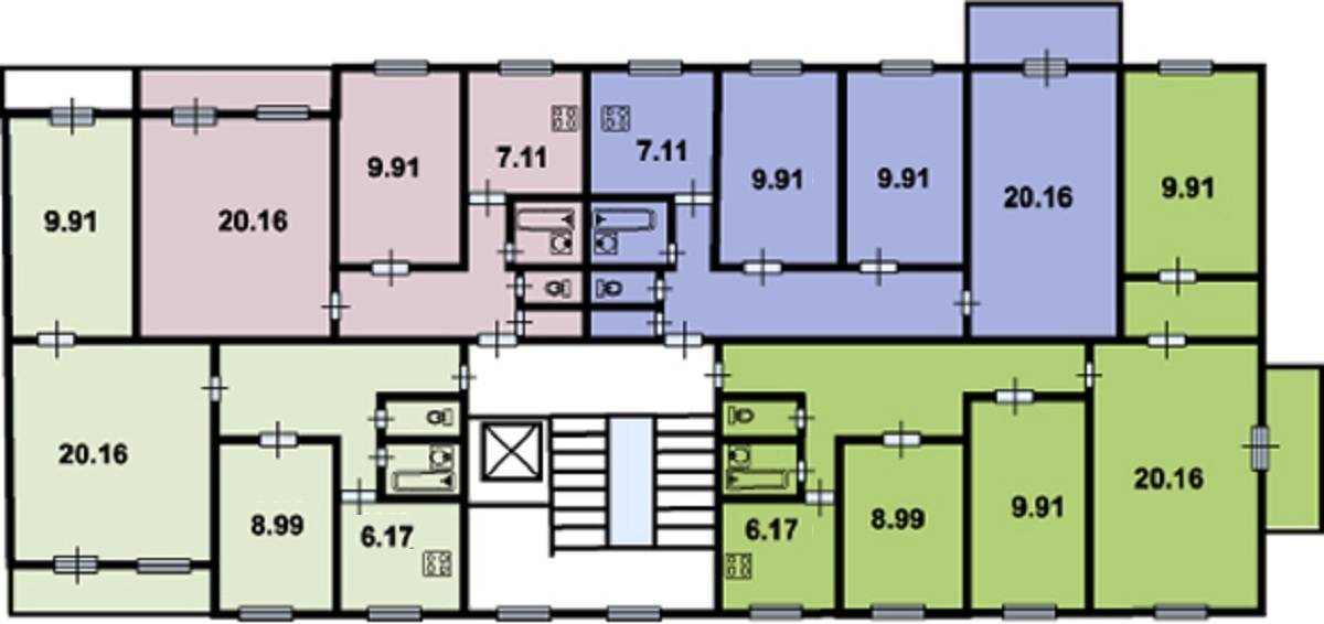 Чтобы их сделать отдельными, между ними полностью сносятся перегородки и строятся заново, однако с учетом того, что сбоку от них пройдет коридор с отдельными входами.