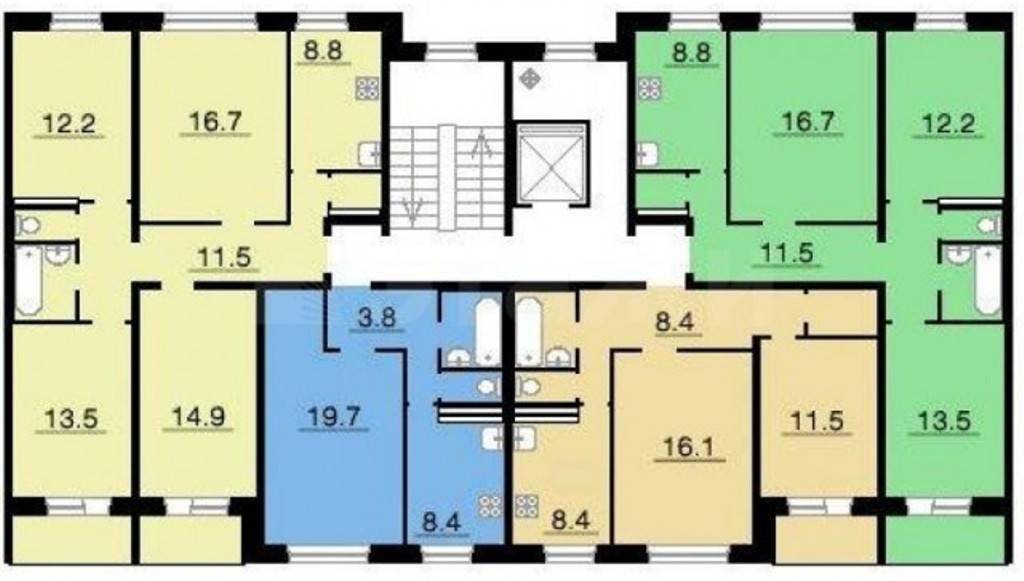 Эти квартиры также относятся к «брежневкам» и отличаются самой маленькой площадью – размеры трехкомнатной здесь всего 54-58 кв. м., кухни – 6-7 м. кв. В многокомнатных имеются кладовки, встроенные шкафы, паркетные полы. Само здание отличается повышенной прочностью, долговечностью. Основные недостатки подобного жилья – наличие проходных комнат.