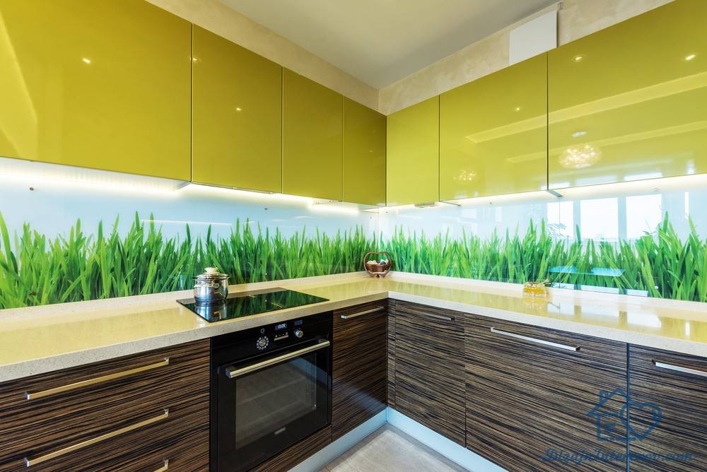 - Стеклянные стеновые панели для кухни, применяемые в основном для обустройства рабочих стен кухни, являются достаточно прочными относительно воздействия влаги и нагрева, если используется закаленное стекло.