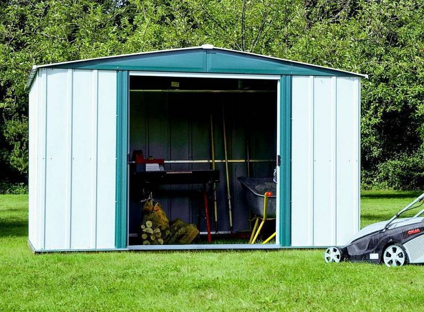 - В малогабаритном сарае легко и удобно хранить инвентарь для уборки, чистки бассейнов, строительные материалы (цемент, утеплитель).