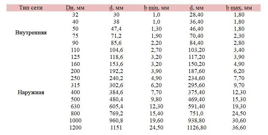 Согласно данным, приводимым в нормативе, диаметр канализационных труб ПВХ