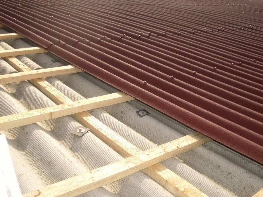 - Можно использовать брус с размерами 50х50 мм, промежуточное расстояние необходимо подобрать, отталкиваясь от параметров листа шифера.