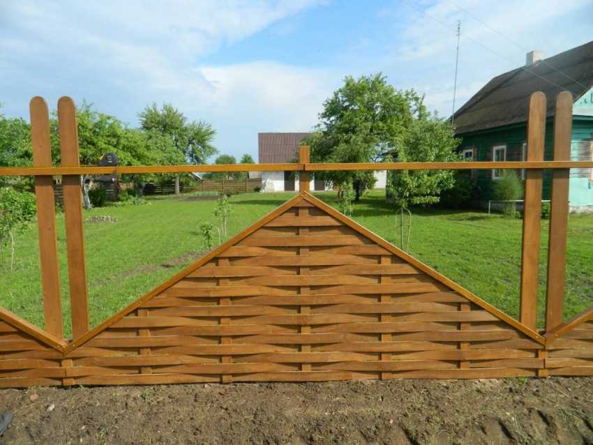 Этот способ возведения ограждений подойдет для наружных заборов, ограждающих участок от дороги, и для сооружения небольших палисадников на внутренней территории. Существует два варианта установки планок в плетеном заборе: