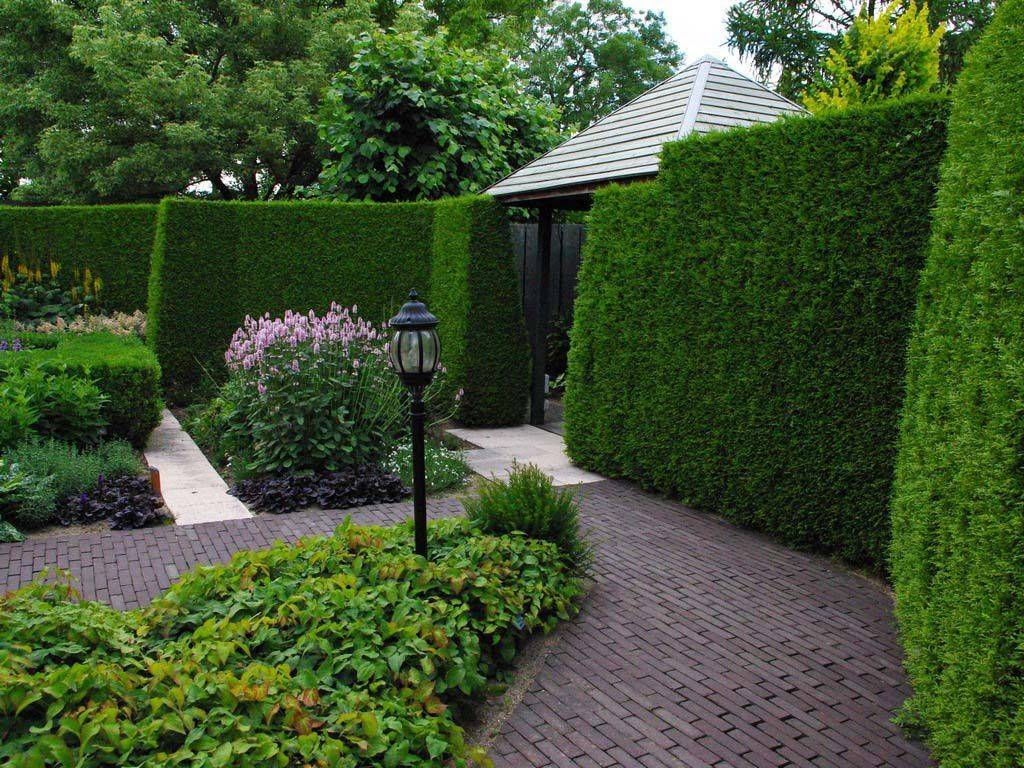 Живые изгороди – фундаментальные строения, переплетающиеся молодыми лозовыми побегами. Существуем много вариантов плетения: косичка, зигзагообразное, лесенкой.