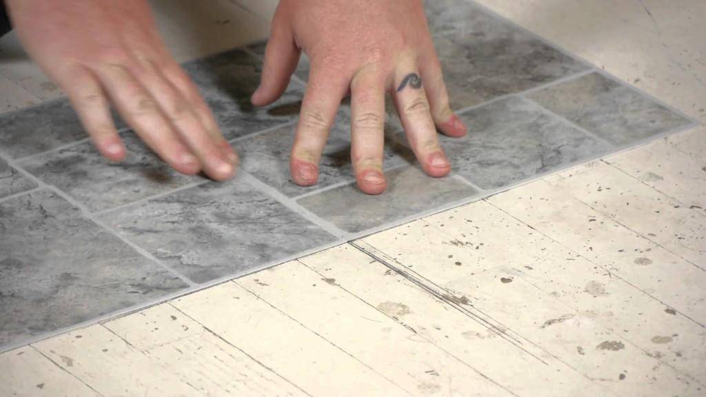 - Прижмите плитку к полу и выровняйте её по уровню. При необходимости постучите её резиновым молотком.