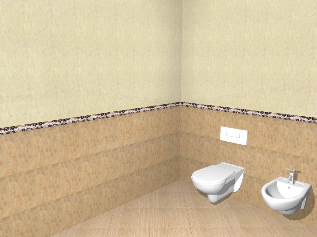 Для этого способа потребуется плитка двух-трех цветов, которой можно будет оформить линии по периметру помещения, а также создать вертикальные или горизонтальные полосы. Такой метод достаточно экономен в плане расхода материалов.