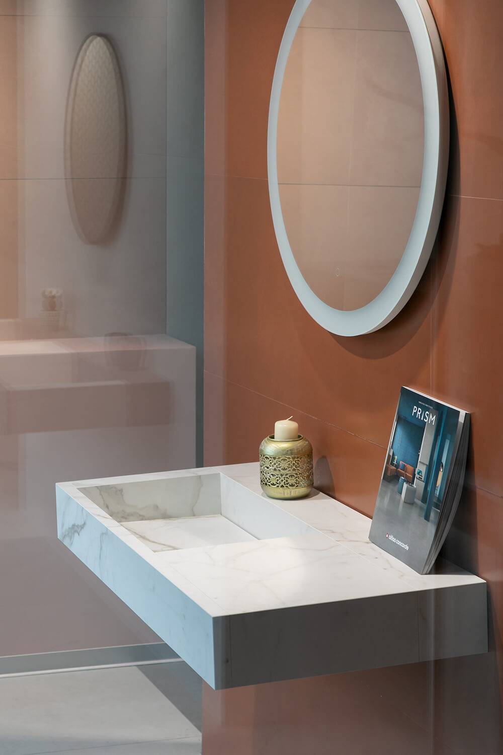Prism. Имитация цемента. Серия выпускается в 13 цветах. Коллекция состоит из настенной плитки, керамогранита, декоративных и специальных элементов. Форматы керамогранита: 120×278 см, 120×120 см, 60×120 см, 60х60 см, 30х60 см. Формат настенной плитки – 50х120 см.