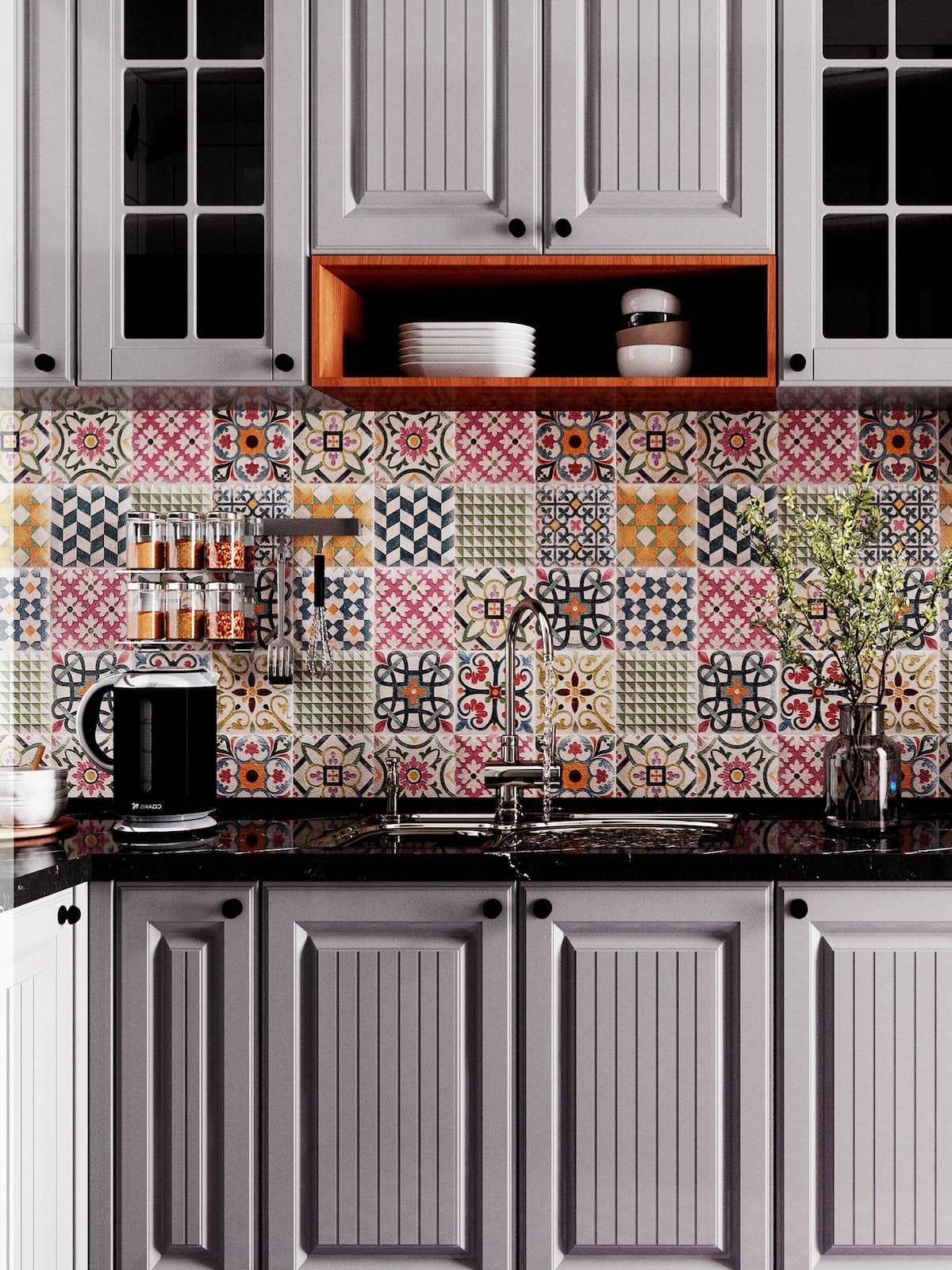 Цементная плитка только набирает популярность, разнообразие дизайнов и цветов привлекает внимание. В процессе работы стоит помнить о ее большом весе — цементная плитка в интерьере кухни или любого другого помещения, уложенная на стены, потребует максимально прочного клея