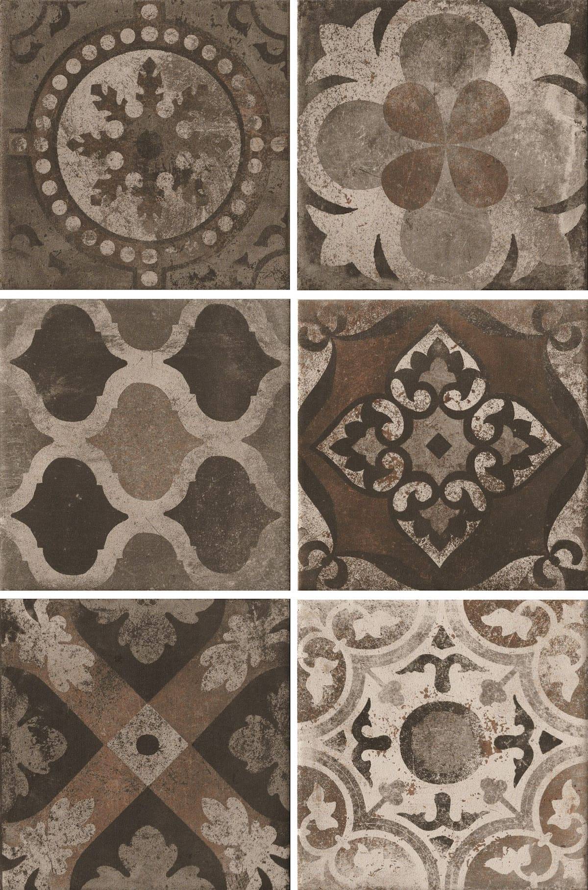 Кафельная плитка парадиз коллекции Reflection с необычной фактурой поверхности, которая напоминает потертую штукатурку. Особый шарм покрытию придают декоры в стиле печворк. Картинка на них как будто собрана из кусочков ткани с разными геометрическими и цветочными рисунками.