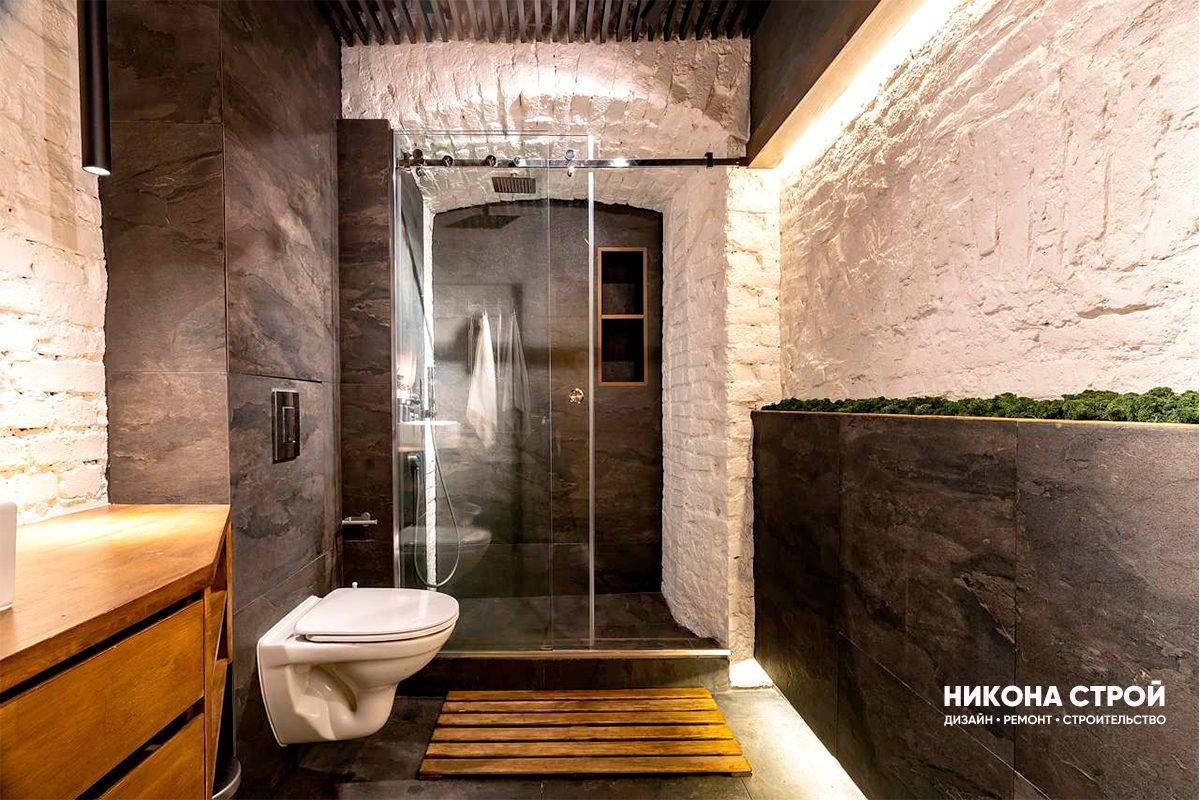 Ванные в стиле лофт хорошо сочетаются с отделкой под натуральный камень