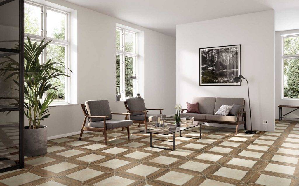 При выборе керамической плитки для пола её размеры играют не менее важную роль, чем при отделке стен. В этом случае выбор осложняется тем, что для работы доступны не только стандартные форматы, но и изделия более сложных форм. Их можно комбинировать между собой для создания интересных схем и рисунков на поверхности пола.