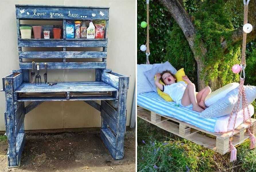 Рабочий столик и качели из поддонов — такие поделки для сада и дачи из разряда «дешево и сердито»