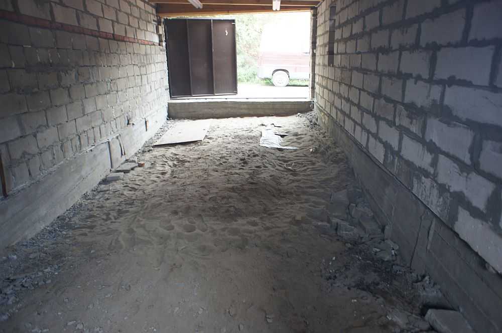 Сначала из гаража удаляется весь строительный мусор, который там может накопиться во время строительства. Далее снимается весь плодородный слой. Полностью весь, до «чистого» грунта без растительности и корней. Толщина слоя может быть разной- где-то 10-15 см, а где-то 50-60 см. Независимо от этого удалить надо весь плодородный слой. В нем много органики, микроорганизмов, насекомых. Органика будет гнить, распространяя соответствующие запахи, а микроорганизмы — способствуют появлению плесени, грибков, насекомые — тоже не самые лучше соседи.