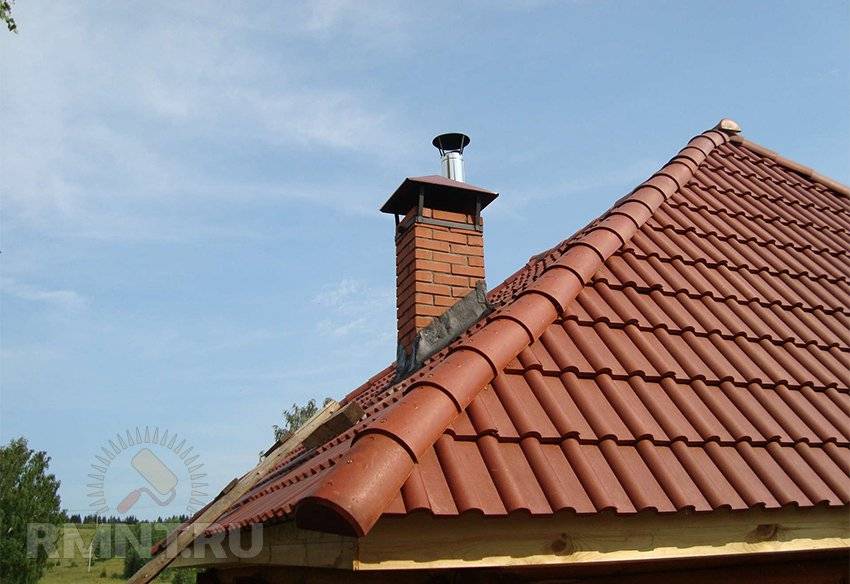 4. Места примыканий к вентиляционным выходам, каминным трубам и прочему перед укладкой вокруг них черепицы отделывают специальными уплотнительными лентами из бутилкаучука.