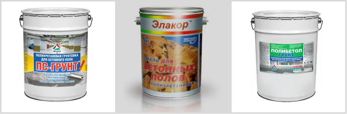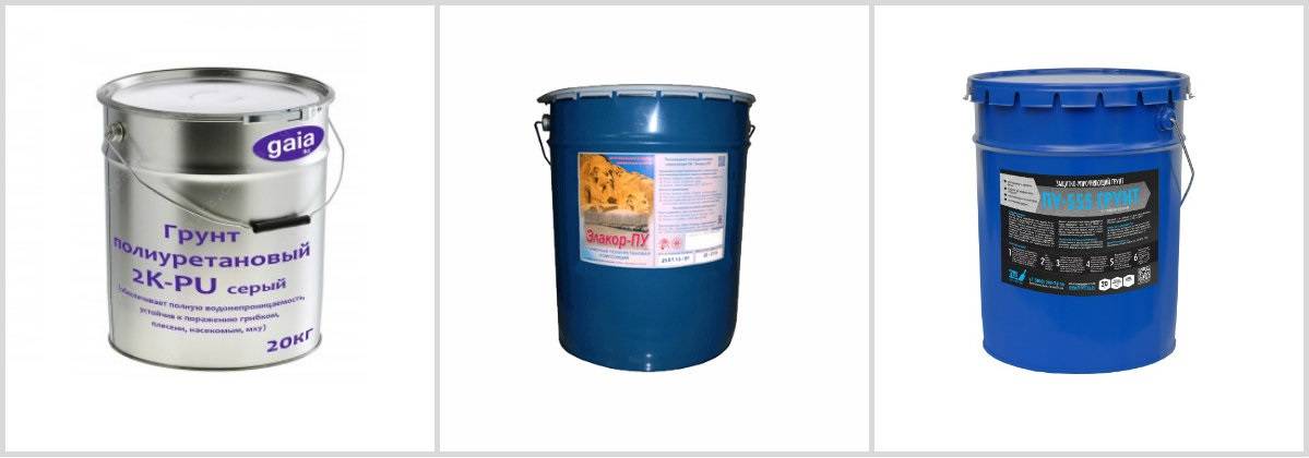 Полиуретановая грунтовка для бетона. Относится к защитным материалам. После нанесения на поверхность выполняет функцию гидроизоляции от капиллярной влаги и защищает от остаточной влажности в стяжке пола. Допускается эксплуатация внутри помещений и в формате «под навесом» снаружи зданий. Перед нанесением краски или побелки, поверхность, обработанная полиуретановым материалом, должна быть тщательно высушена. Популярные марки: «Полибетол-грунт», «ПС-грунт», «Элакор-ПУ Грунт».