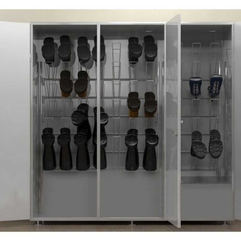 Для удобства использования рекомендуется приобретать наклонные полки, где обувь хорошо видна, грязь и вода с нее стекают на поддоны, а ширина всей конструкции становится значительно меньше. Благодаря возможности самостоятельно устанавливать высоту и частоту полок можно организовать оптимальное расстояние между всеми парами обуви, чтобы они хорошо вентилировались и были хорошо видны.