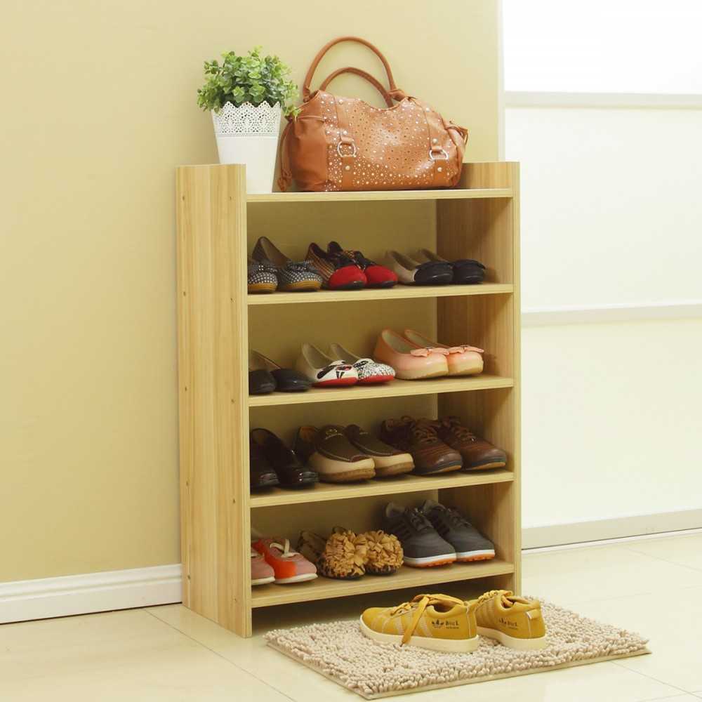 Применение подобного типа приспособлений подойдет тем, кто обладает большим количеством обуви. Можно предоставить под цели хранения целый стеллаж, куда поместить любимые кеды, кроссовки, туфли или ботинки. Однако, если коллекция полностью состоит высоких сапог или ботильонов, то их будет не очень удобно хранить на открытых полках стеллажа. Тем более, что в открытом стеллаже придется раз в неделю смахивать пыль, оседающую на обуви.
