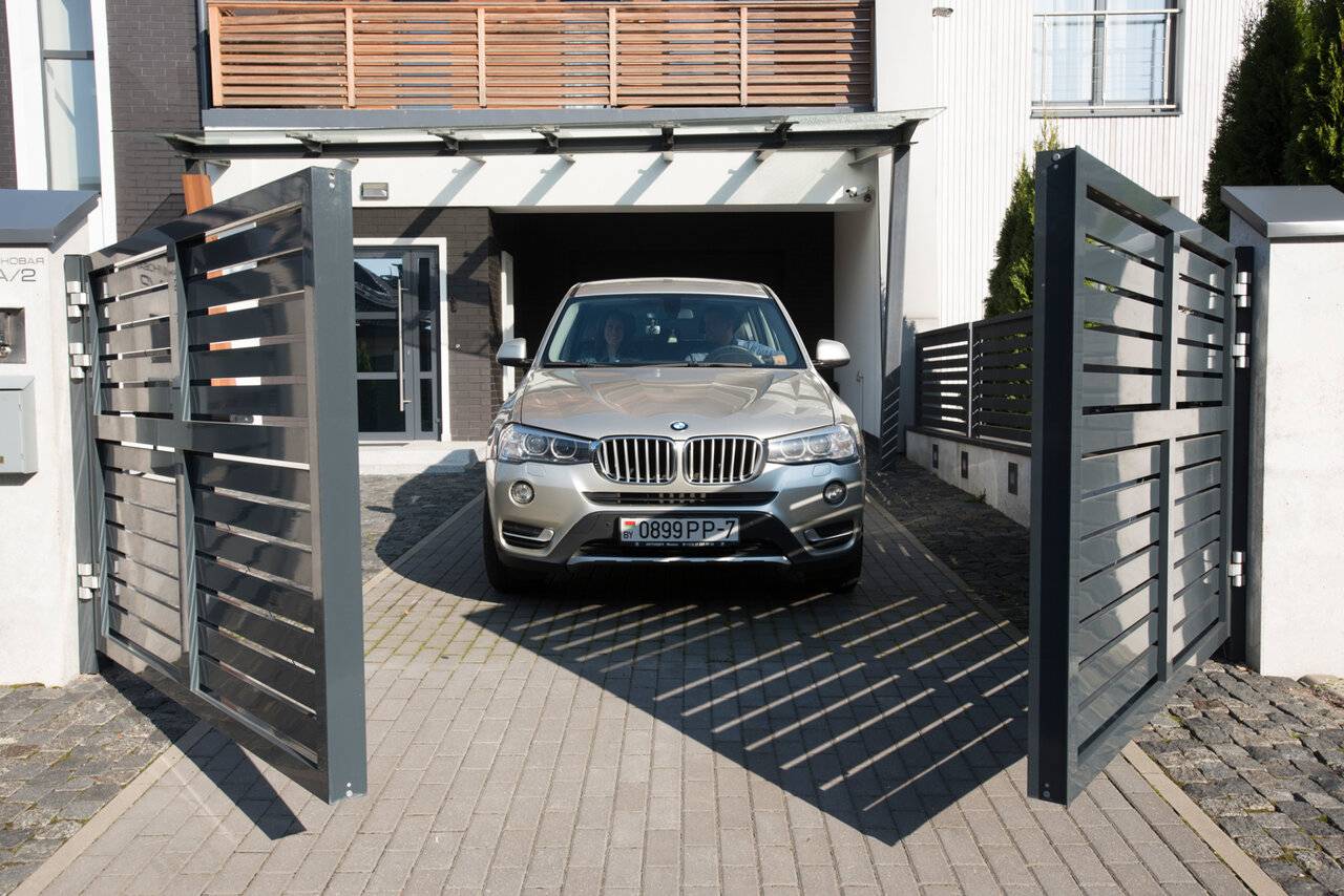 Выбирая распашные ворота для гаража, необходимо учесть несколько моментов: во-первых, несмотря на свои преимущества, такие конструкции имеют один недостаток — надо учесть свободное пространство перед въездом в гараж, необходимое для их хода при открытии и закрытии.