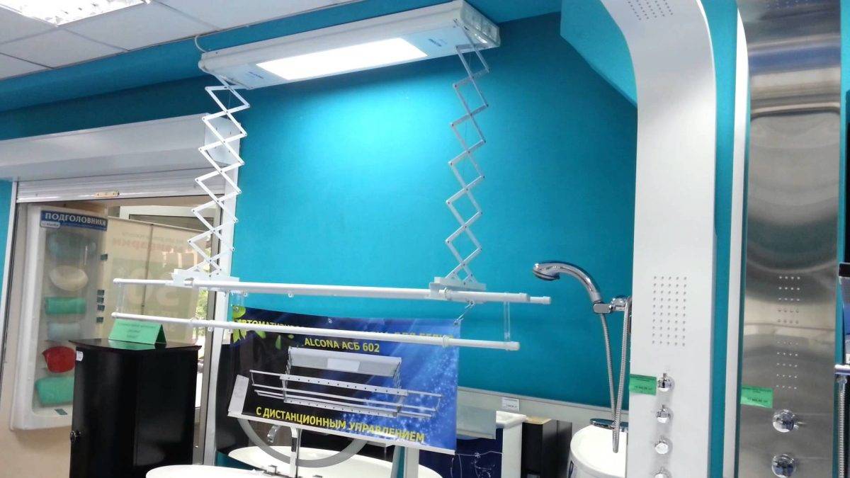 Механизм регулировки отвечает за удобство настройки сушилки. Почти вся суть заключается в натягивании веревки, закрепленной на ролики под потолком. Натягивание может осуществляться либо физической силой, либо при помощи мотора. Первые варианты дешевле и надежны, вторые – дороже и менее надежны.