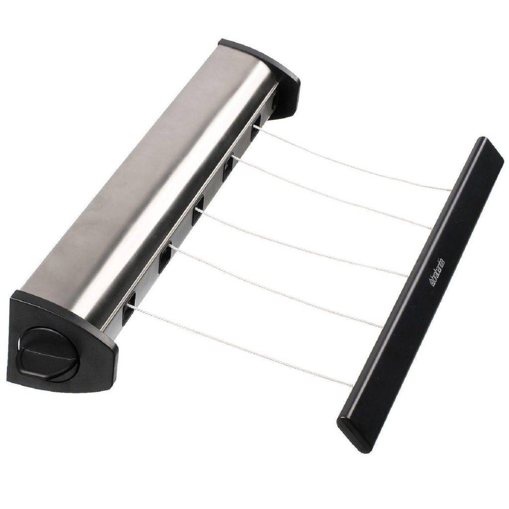 Прочная и надежная сушилка Brabantia, крепится между стеной и потолком. Корпус изделия в виде трубы выполнен из металла и имеет специальные прорези через которые выходят веревки. Рабочая часть растягивается до 4,4 метра, что позволяет развешивать белье в удобном для сушки порядке. У Brabantia предусмотрен фиксатор натяжения веревок. Максимальная нагрузка достигает 12,5 кг.