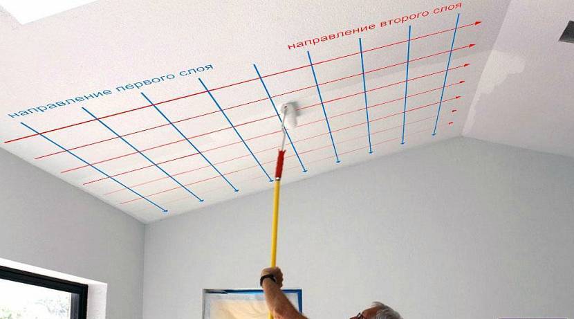 Направление послойного окрашивания потолка из пенопластовых плиток малярным валикомИсточник postroi-sam.info