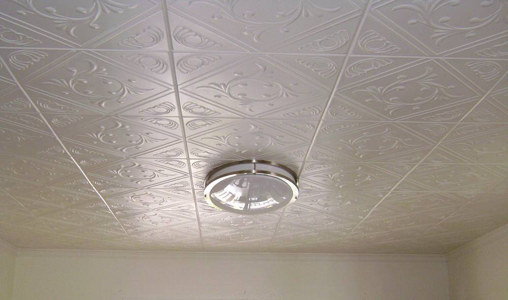 - большое разнообразие. В продаже можно найти как самую простую белую плитку с незамысловатым узором, так и материал, очень точно повторяющей структуру дерева или камня, поэтому с помощью потолочной плитки можно обустроить любой интерьер. Белую плитку можно окрасить в любой необходимый оттенок;