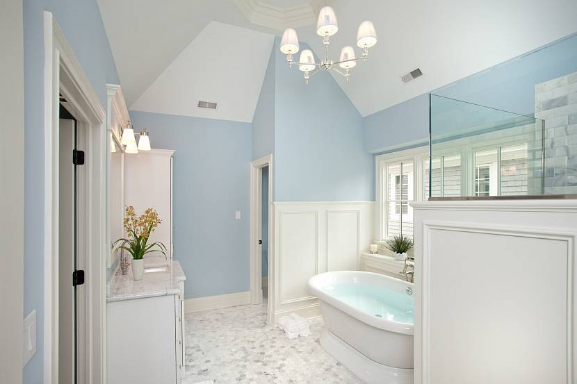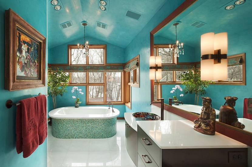 Кроме того, вы можете покрасить его в чуть более темный оттенок, чем остальная часть потолка — этот момент бросается в глаза и превращает даже небольшую ванную комнату в интересный интерьер.