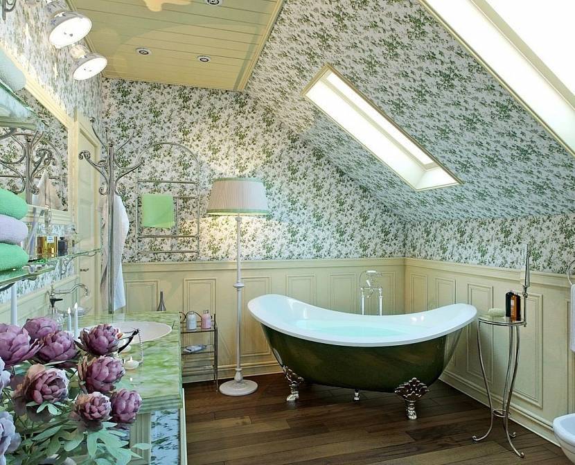Потолок служит фоном интерьера, поэтому его оформляют в соответствии с выбранным для ванной стилем. В зависимости от этого потолку придают следующий вид: