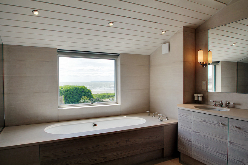 Хорошей идеей для потолка ванной комнаты с ограниченным пространством является тот, который сочетает в себе минимализм с оттенком воображения. Часто используемым решением в таких помещениях является подвесной потолок — хотя иногда он понижает высоту интерьера, в то же время он оптически организует пространство за счет возможности скрывать в нем электрические провода.