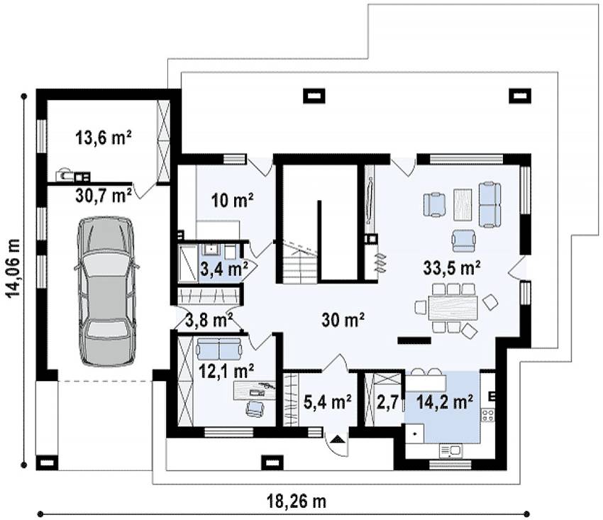 - Из дома можно быстро попасть в гараж, а так же предусмотреть через него эвакуационный выход.