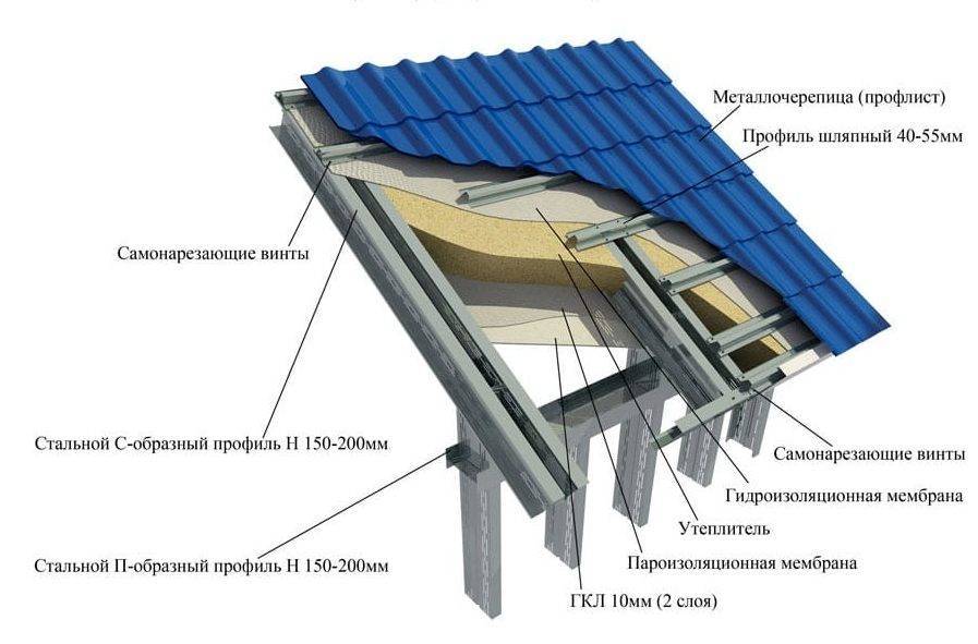 Именно поэтому утепленная крыша из профнастила позволяет сделать условия в помещении более комфортными и существенно снизить затраты на отопление.