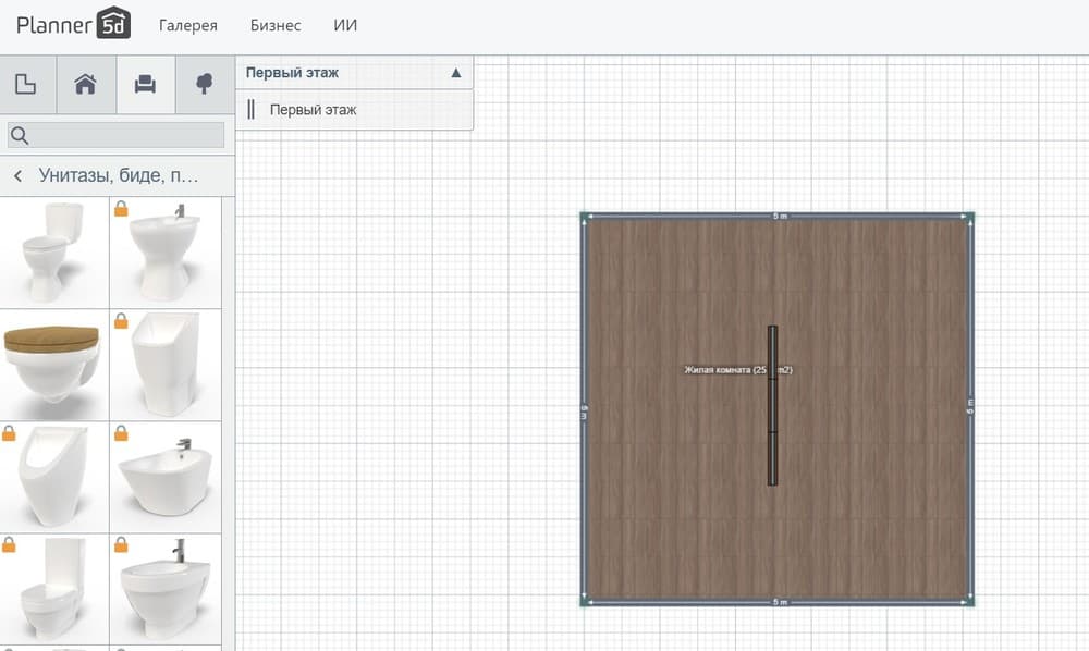 После выбора, например, нового проекта, следует выбрать помещение. Как правило, с левой стороны находится меню, в котором выбирается та же ванная. После этого открывается большое пустое поле, чаще всего с разметкой и координатами для удобства. В редакторе обязательно присутствует кнопка установки стен, пола и потолка при необходимости. Нажав на стены, например, перетаскивая курсор на поле работы, можно, удерживая левую кнопку мыши и «растягивая» стену, добиться нужного размера. И дальше действовать так же, до момента установки мебели или, в случае с ванной, сантехнических приборов.