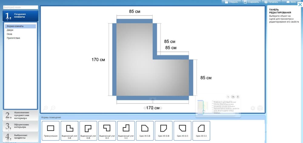 В Astron Design стоит запрет на импорт предметов со сторонних ресурсов. К тому же нельзя сделать проект всего дома или квартиры. Программа предназначена для работы над созданием интерьера одной комнаты. Зато интерфейс полностью русифицирован, что облегчает работу новичкам.