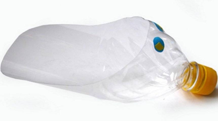 - От тары из пластика отрезают верхнюю часть. Ее вставляют обратно, развернув горлышком вниз.