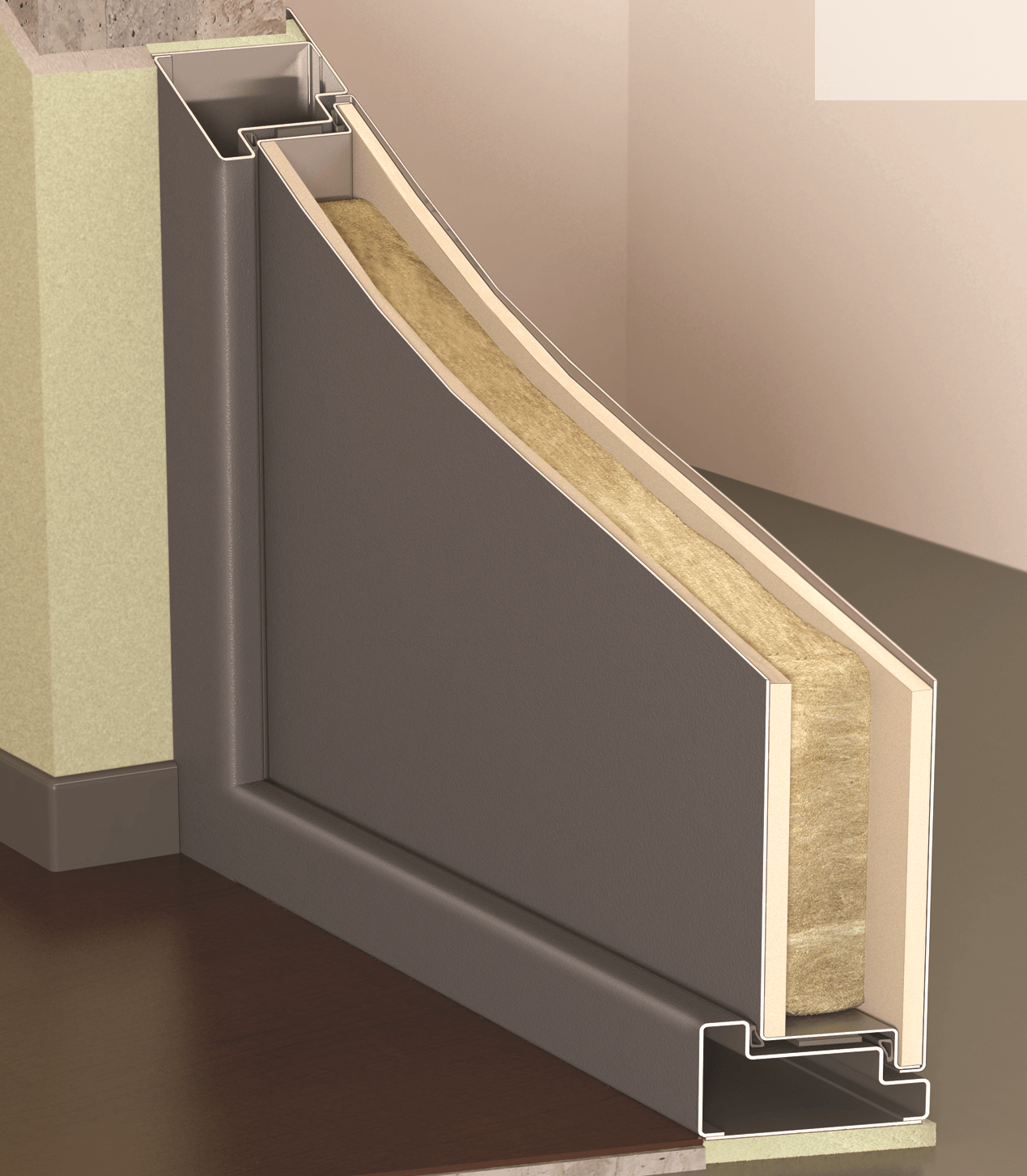Обычно изготавливается из стальных листов, чаще всего толщиной от 0,8 мм до 1,5 мм. Между стальными листами размещается минеральная плита (минеральная вата), этот материал обладает хорошими теплоизолирующими, звукоизоляционными и огнестойкими свойствами.