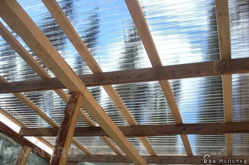 Для примера рассмотрим технологию сооружения прозрачной крыши для веранды из поликарбоната. Будем считать, что стропильная система готова, остается только уложить сам кровельный материал.