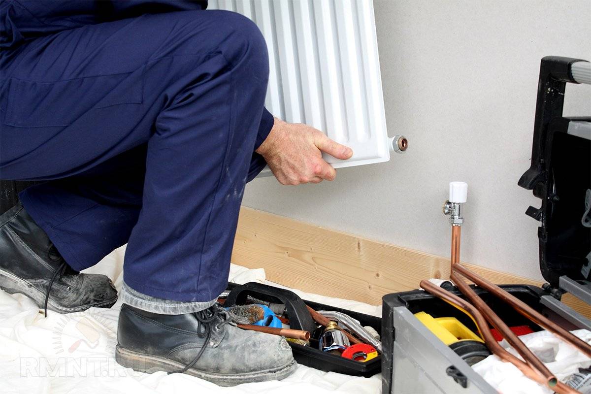 Инжекторный узел подключается схожим образом, однако довольно часто он не имеет гайки, заменяющей футорку. При одностороннем нижнем подключении отвод с обратной стороны глушится пробкой, как и один из верхних, в оставшийся устанавливается кран Маевского. Дальнейшая схема сборки проста: на резьбовые штуцеры клапана, инжекторного узла или нижних отводов на паклю с герметизирующей пастой упаковывают всю необходимую запорно-регулирующую аппаратуру. В конечном итоге радиатор устанавливается на место в сборе и фиксируется с помощью настенного или напольного способа крепления, затем проводится его подключение к системе.