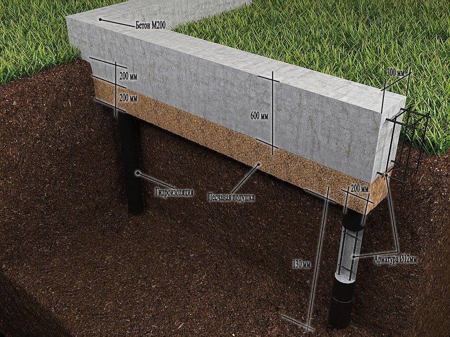 - Ростверк из железобетона. Основой служит двутавр и швеллер (для монтажа под несущие стены СНиП рекомендует) швеллер 30.