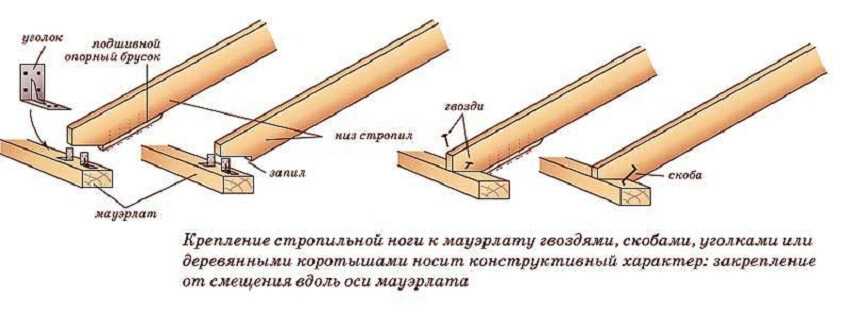 Тип закрепления стропил на стенах определяется величиной уклона крыши, а также нагрузками, которые будут на нее приходиться.