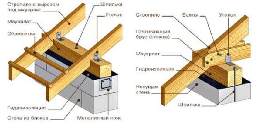 Крепление мауэрлата односкатной крыши