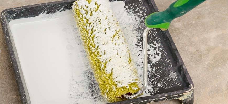 - Валик должен погружаться в краску примерно на четверть – не нужно обмакивать его целиком.