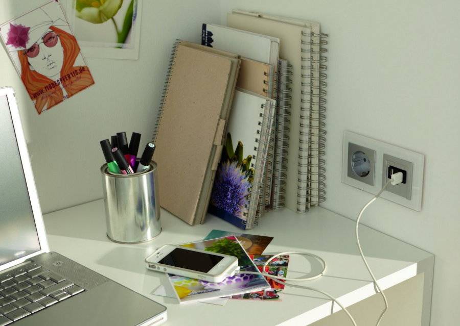 Рядом с рабочим местом обязательно нужно установить достаточное количество розеток для техники, в том числе с заделом на будущее