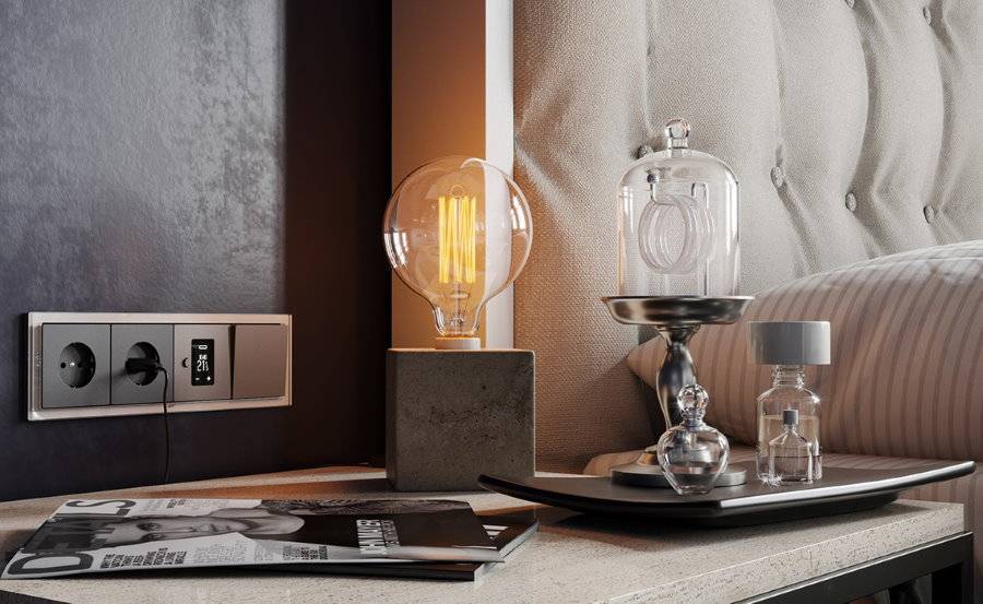 Как правильно разместить розетки над тумбочкой в спальне? Обычно в этой комнате есть прикроватный источник освещения – торшер или настольная лампа. Также зона спального места требует точки питания для подзарядки мобильных устройств.