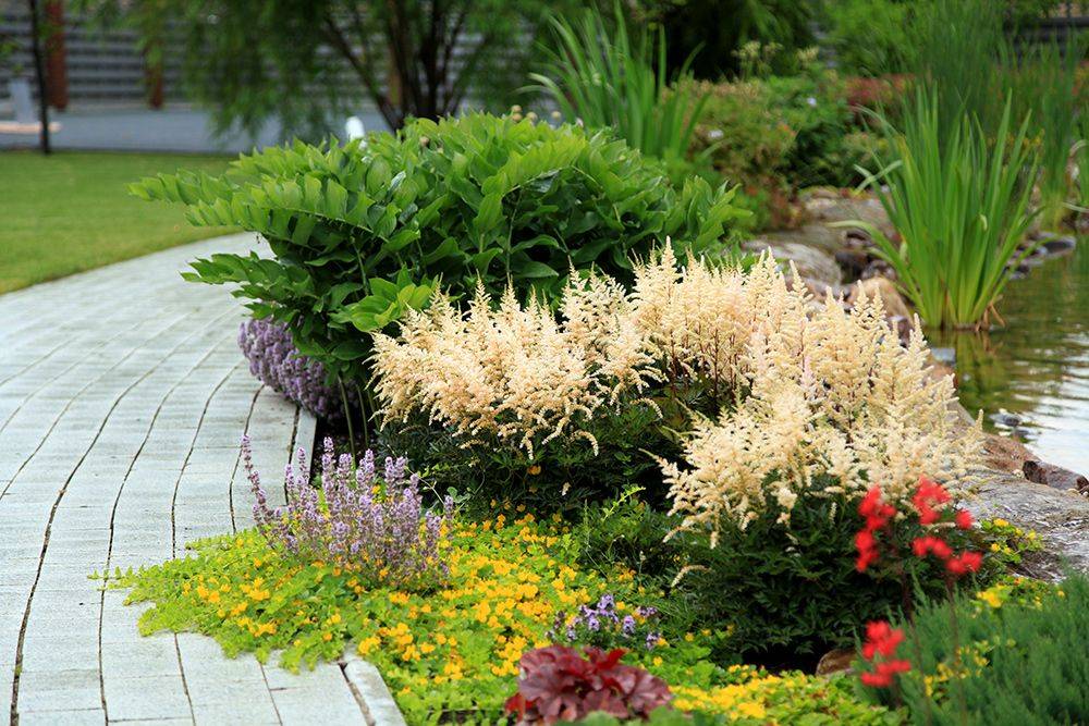 - Создание красивого обрамления сада с помощью чередующихся хост и астильб.