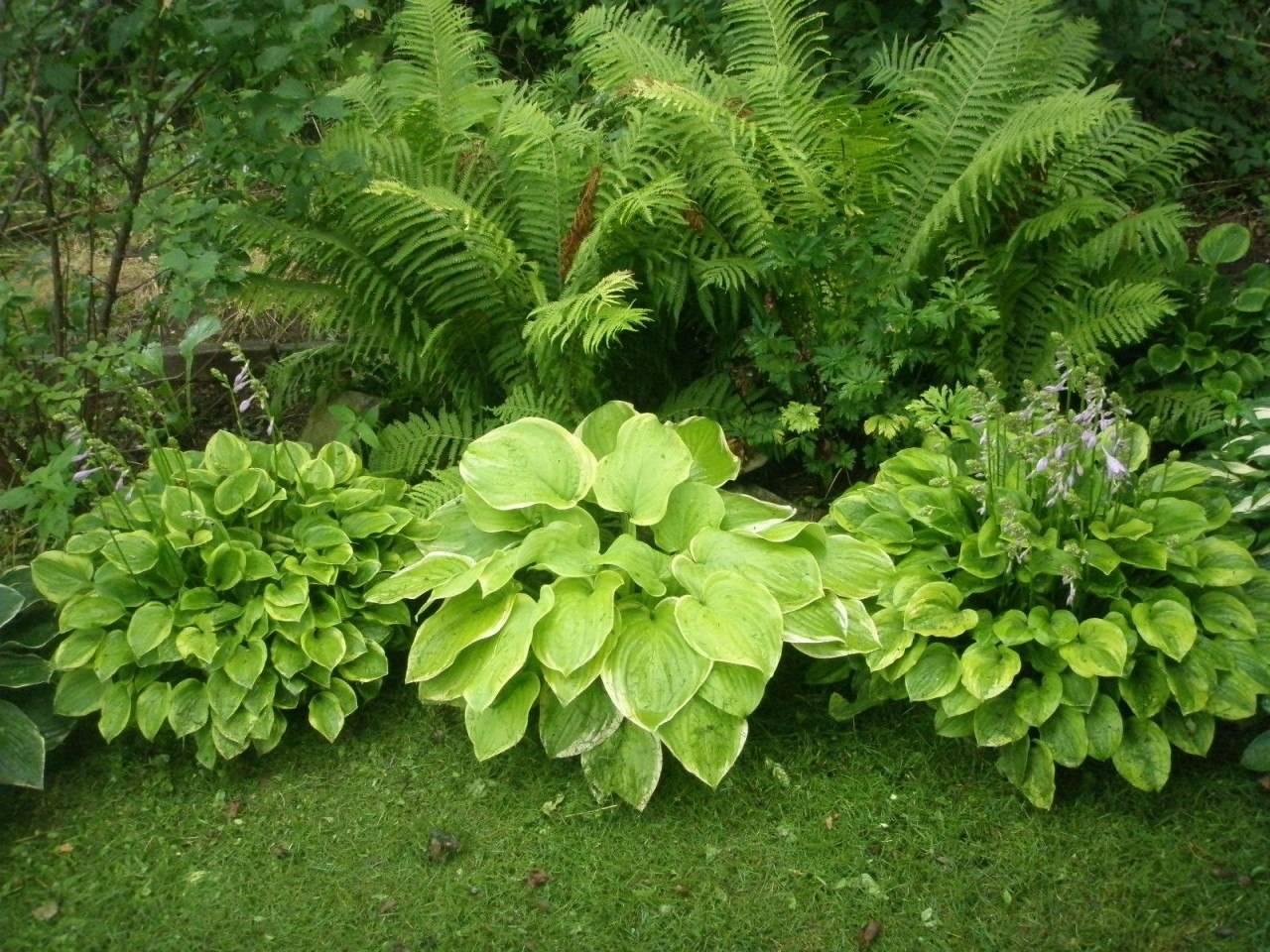 Зона отдыха в загородном доме: несколько сортов хосты и папортник
