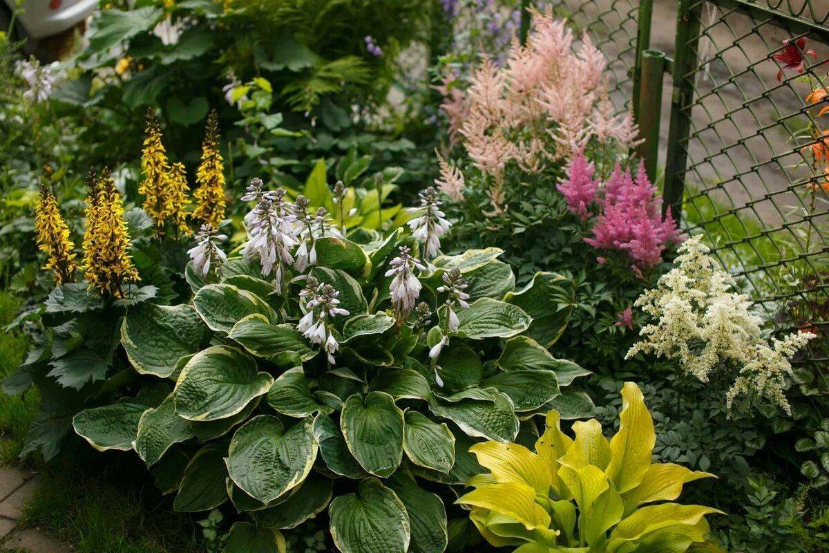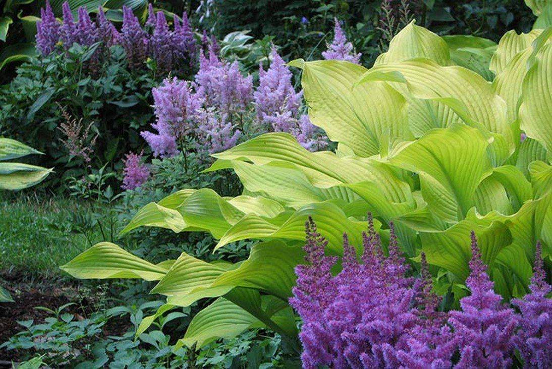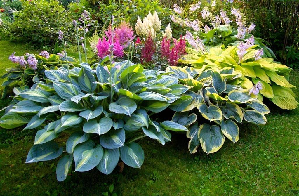 Астильба, папоротники, аквилегия, традиционно считаются для хосты лучшими партнерами.